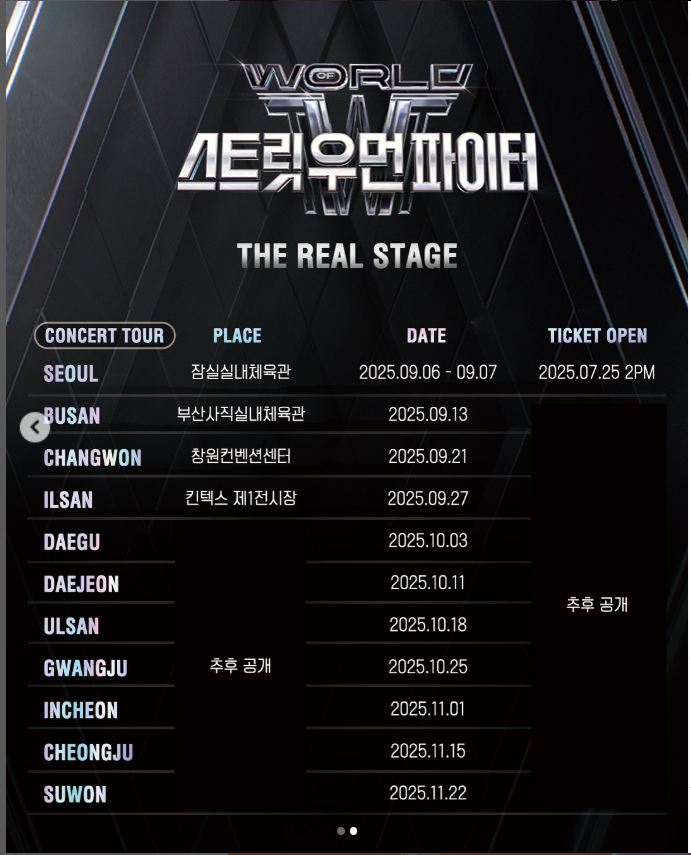 Mnet '월드 오브 스트릿 우먼 파이터3'(월드 오브 스우파3)가 전국투어 콘서트 “THE REAL STAGE”로 팬들과 다시 만납니다. 방송 속 전설의 무대를 현장에서 직접 체험할 수 있는 특별한 기회, 지금 바로 공연 정보를 확인해보세요.