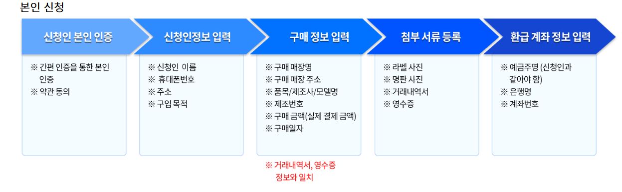 - 구매 영수증, 제품 명판 사진, 통장 사본 등 필요한 서류를 업로드합니다.